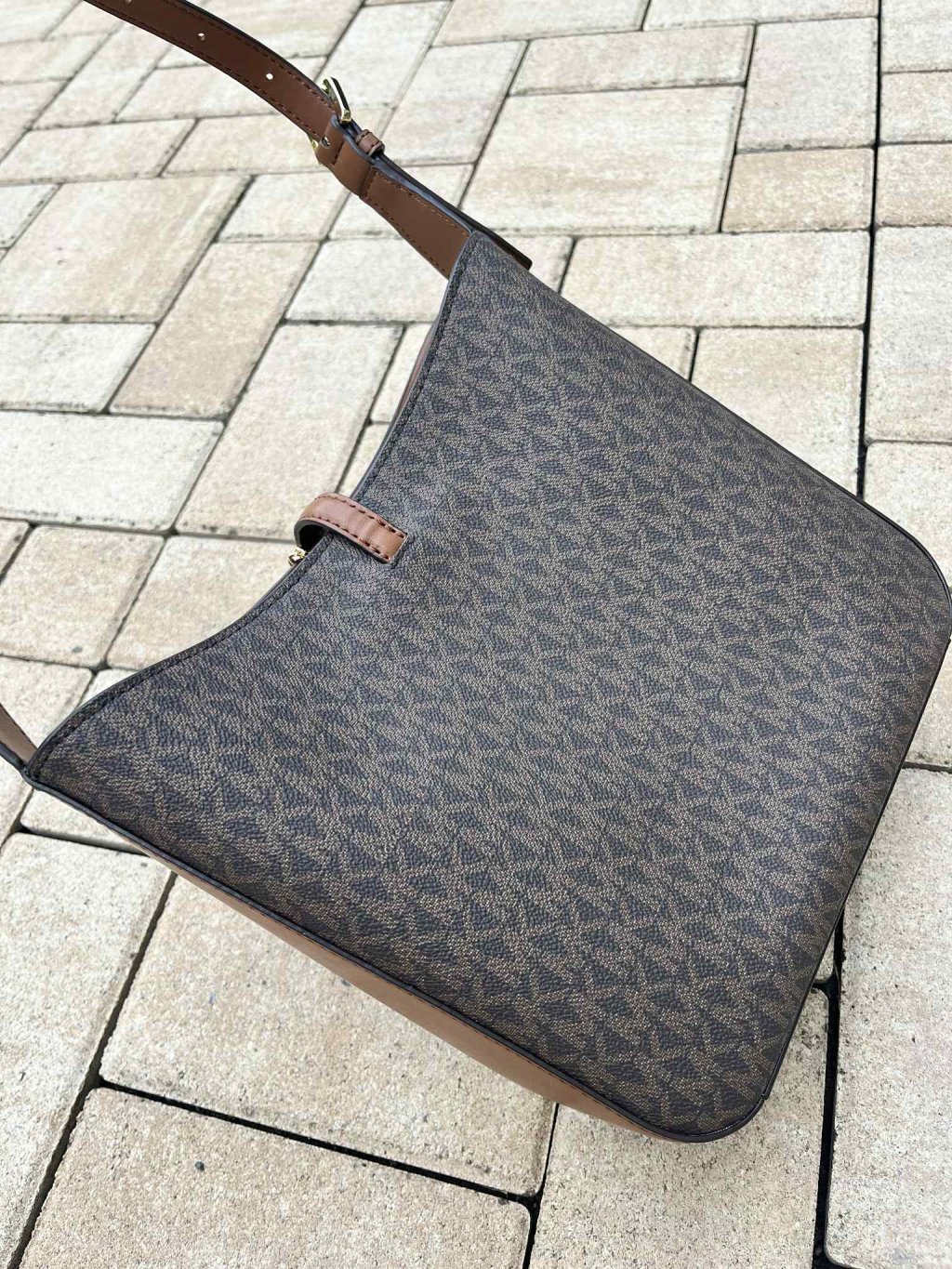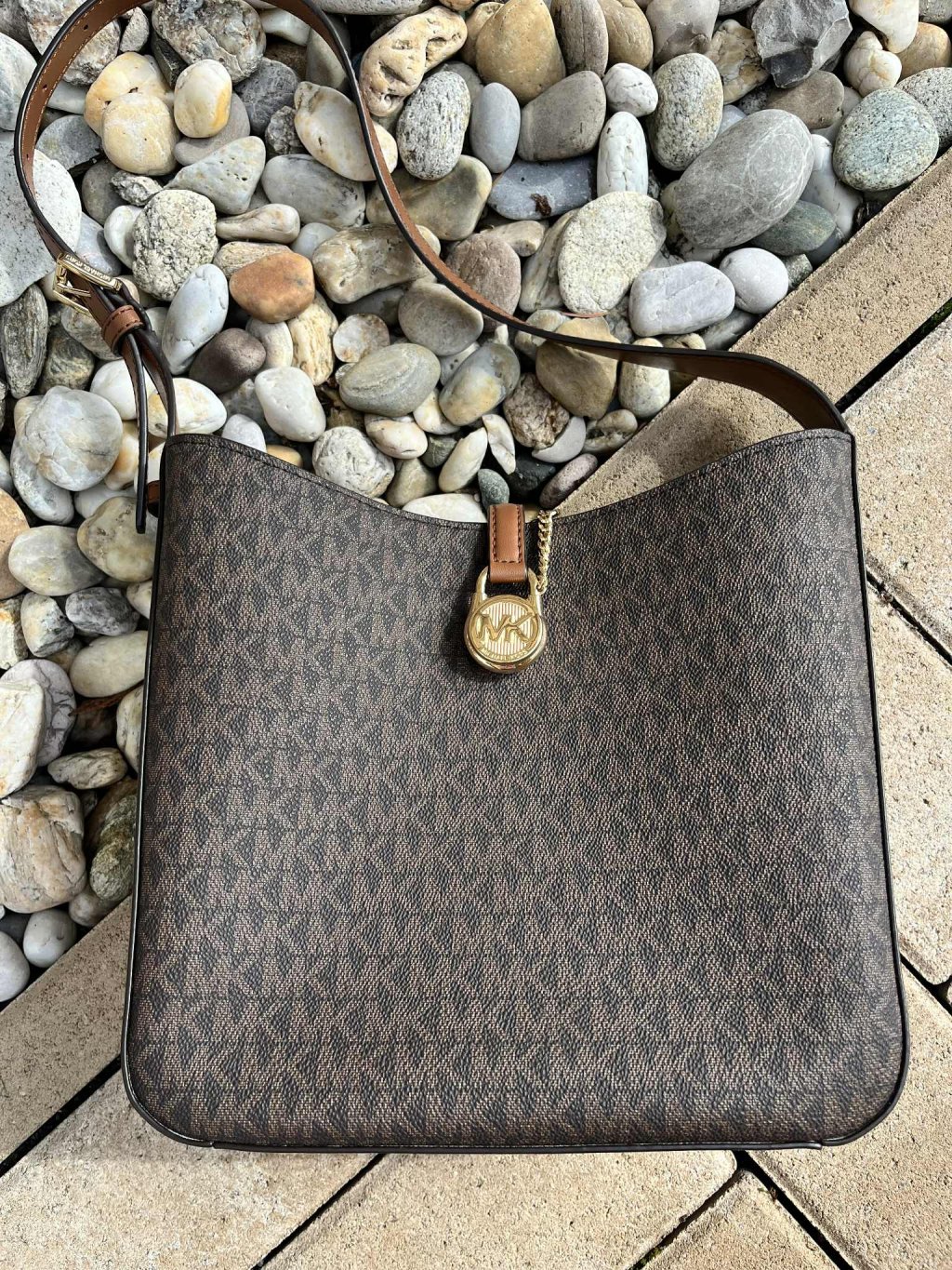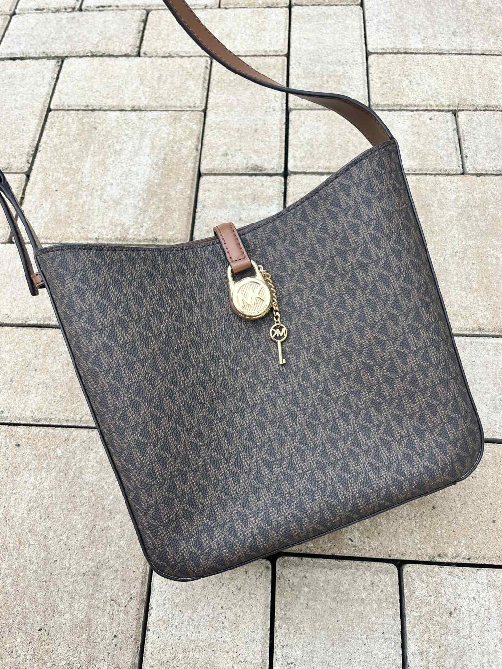 Michael Kors shoulder s monogramem hnědá